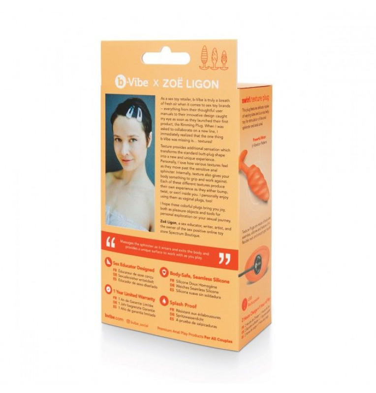 Знакомьтесь с новыми анальными плагами от B-vibe - коллекция из трех восхитительно интересных текстурных пробок, разработанных секс-педагогом Зоэ Лигон. Отойдя от гладких, обтекаемых форм, бренд выпустил эти яркие, нежные и текстурированные пробки с вибрацией, чтобы дать нам выбор и лучшие ощущения! Плотная текстура с закрученными вдоль игрушки спиралями создает ощущение приятной тяги и комфортного введения, когда игрушка входит и выходит из тела вы ощущаете это томное закручивание и волны спиралей в сочетании с вибрацией. 6 шаблонов вибрации и беспрерывная работа в течение часа наверняка удовлетворит ваши запросы. Все плаги b-Vibe гипоаллергенны и изготовлены из высококачественного 100% безопасного силикона, чтобы обеспечить не только комфорт, но и безопасность. Мягкая, бесшовная поверхность легко очищается и не боится капель воды, а магнитная зарядка позволяет быстро и легко установить гаджет на подзарядку.