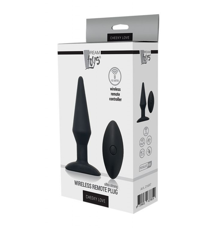 Черный анальный вибромассажер WIRELESS REMOTE PLUG с пультом.