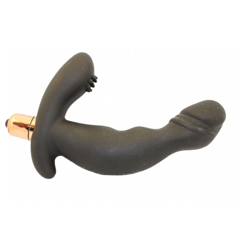 Вибростимулятор черного цвета с загнутым кончиком для наилучшей стимуляции. Водонепроницаемый.