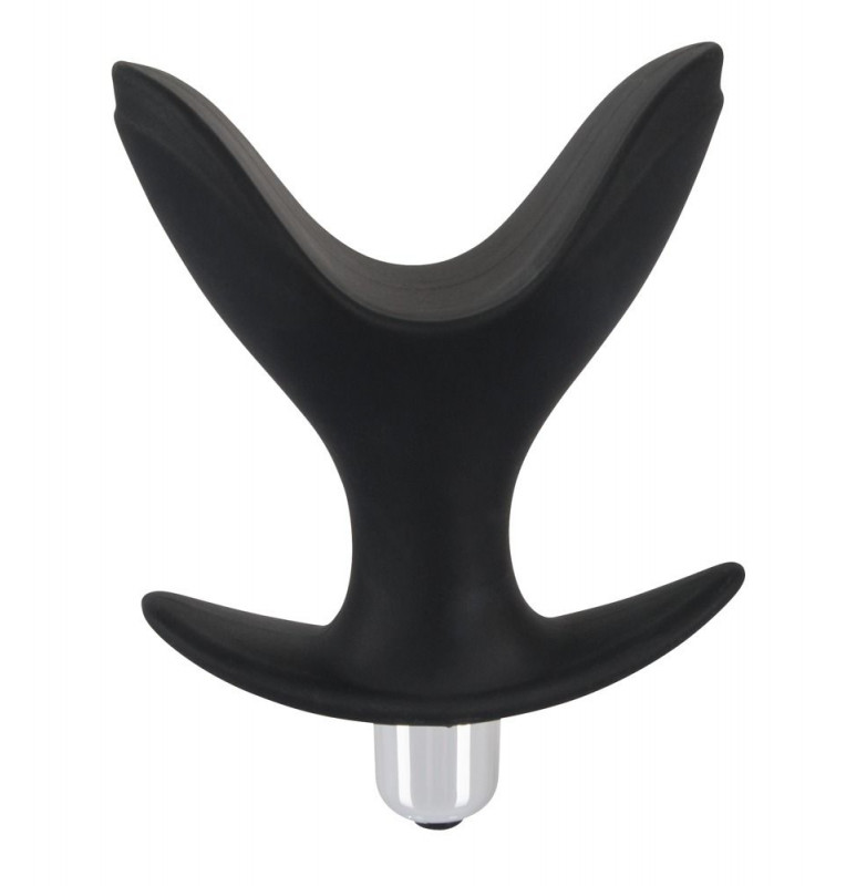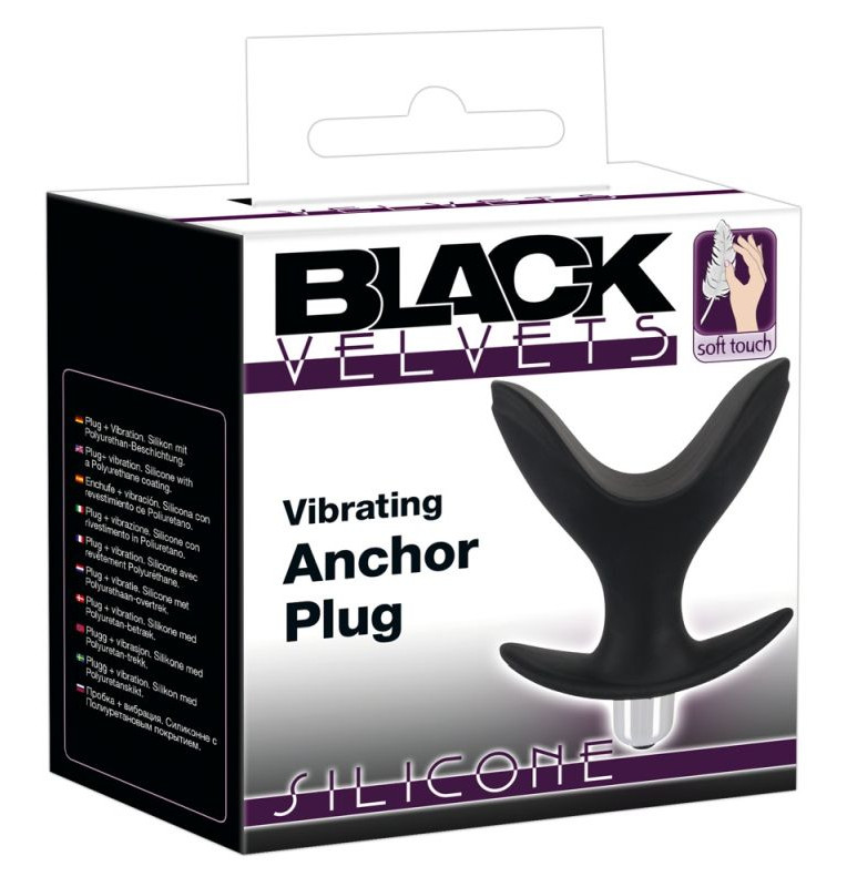 Чёрная анальная V-образная пробка Black Velvets Vibrating Anchor Plug с вибрацией. Диаметр в открытом состоянии - 7,8 см.