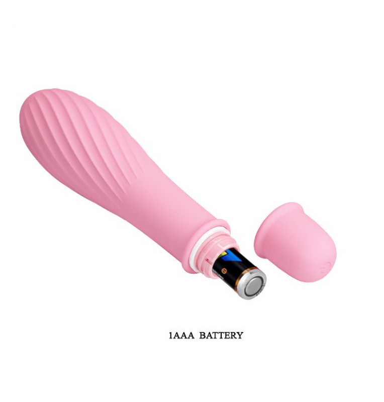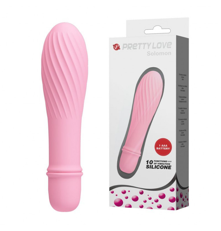 Нежно-розовый вибратор Solomon с бороздками. 10 режимов вибрации.