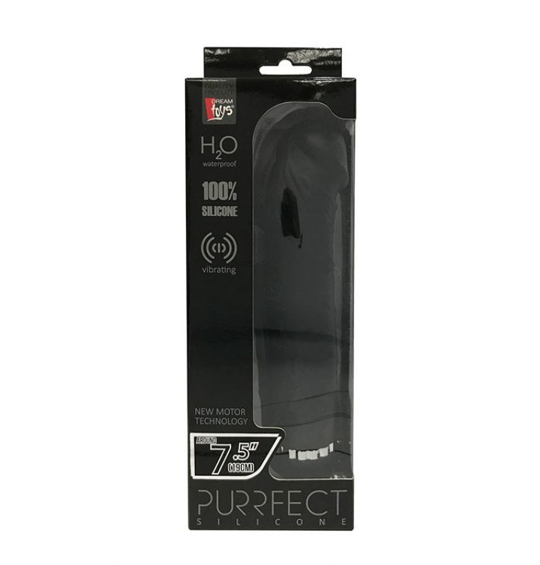 Чёрный вибратор-реалистик PURRFECT SILICONE DELUXE 7.5INCH. 10 режимов вибрации. Водонепроницаемый.