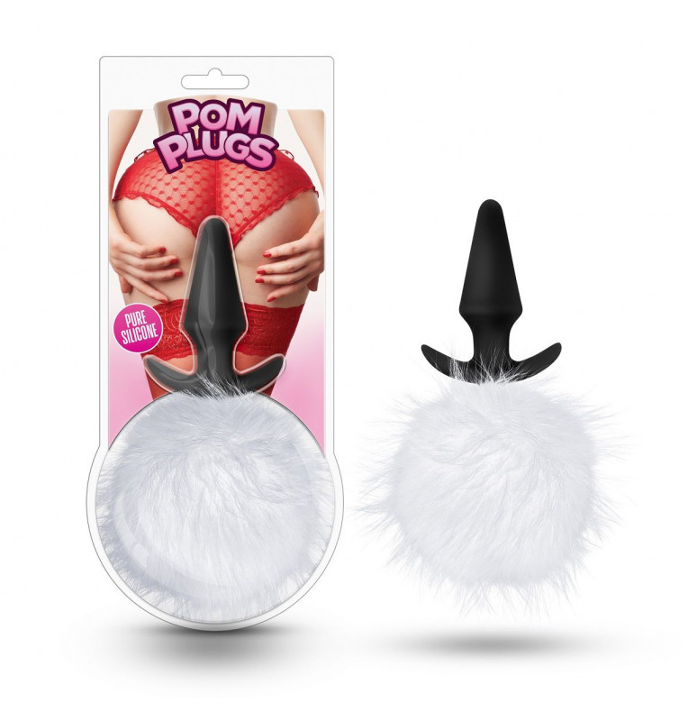 Силиконовая анальная пробка с белым заячьим хвостом Fur Pom Pom. Рабочая длина - 8,9 см.