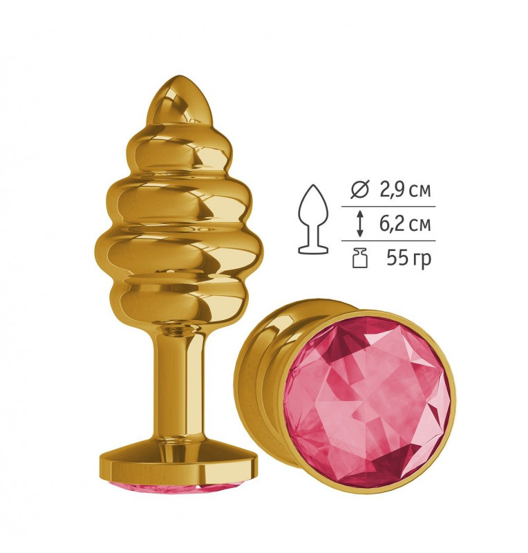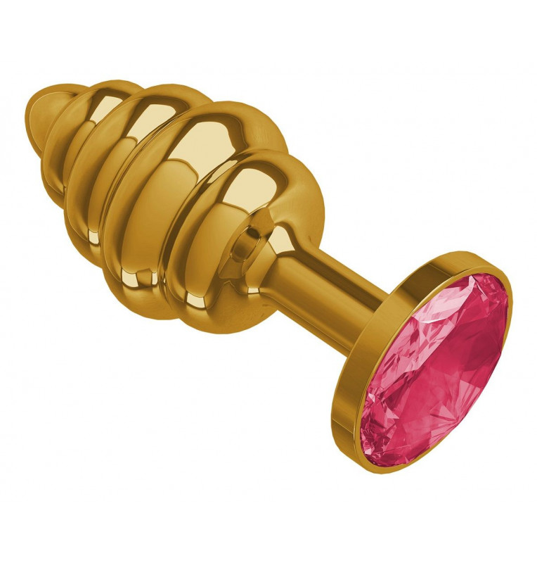 Золотистая пробка с рёбрышками и малиновым кристаллом - 7 см.