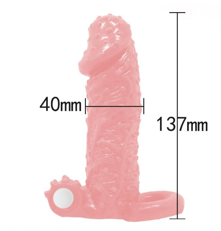 Телесная насадка с точками, клиторальным стимулятором и подхватом - 13,7 см.