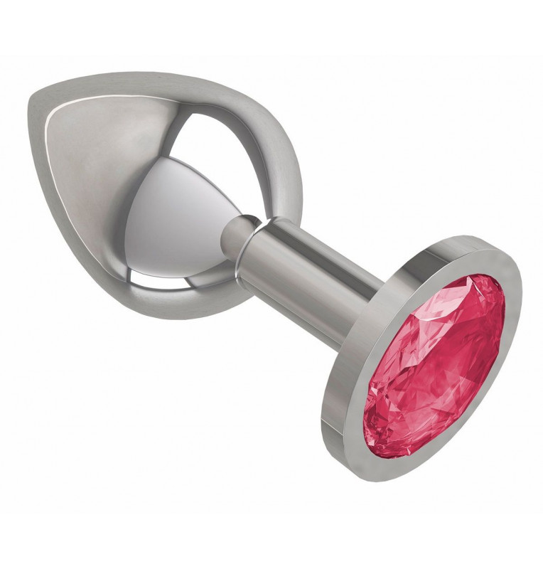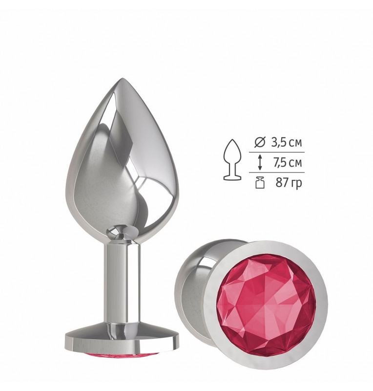 Серебристая средняя пробка с малиновым кристаллом - 8,5 см.