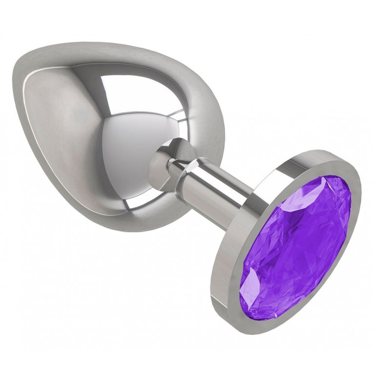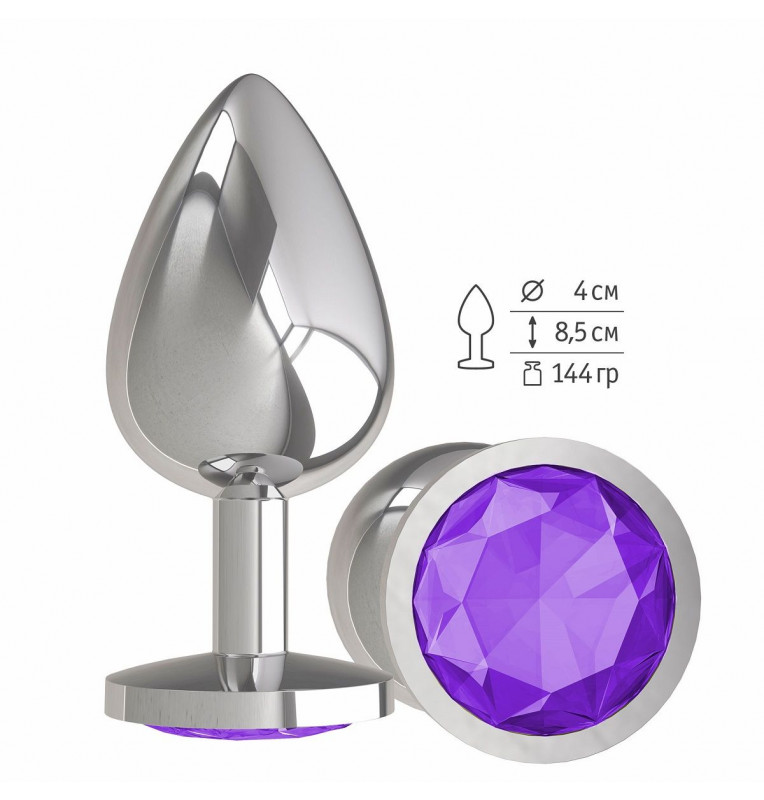 Серебристая большая анальная пробка с фиолетовым кристаллом - 9,5 см.