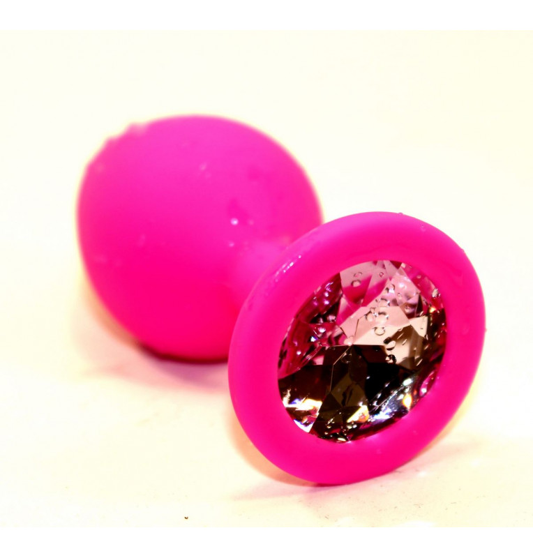 Розовая силиконовая анальная пробка с розовым стразом - 9,5 см.