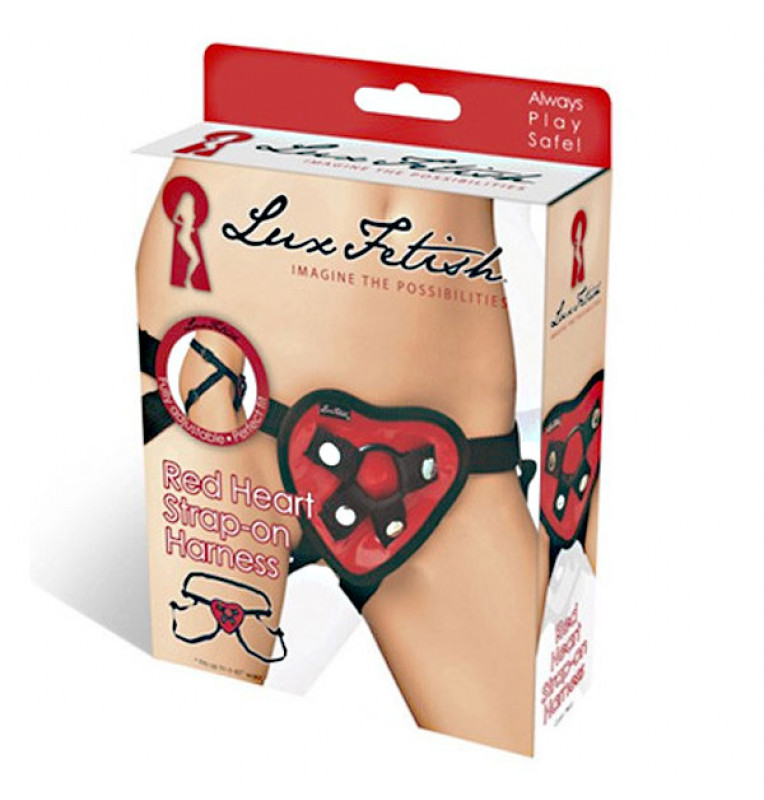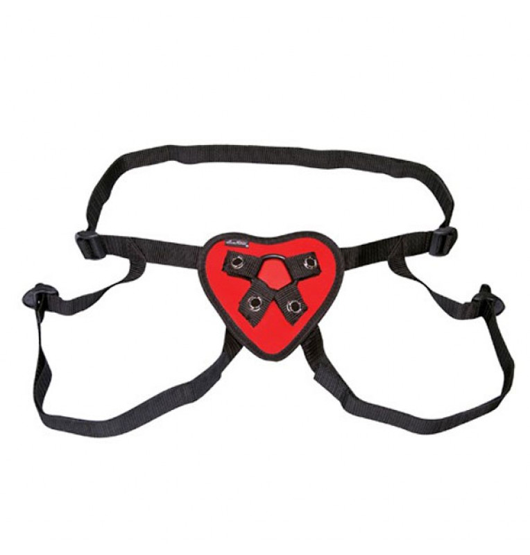 Трусики-джоки с регулирующимся с помощью пряжек размером. На красном мягком сердце - 2 кольца разного размера для крепления стимуляторов. Размер: 13-19 см.