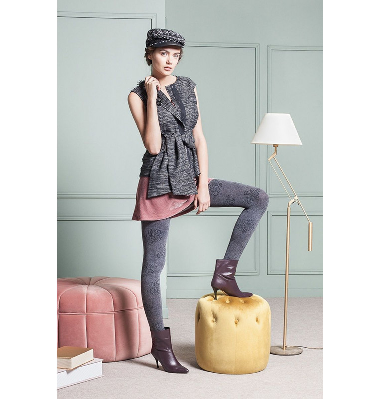 Фантазийные колготки Fiona с крупным цветочным узором.