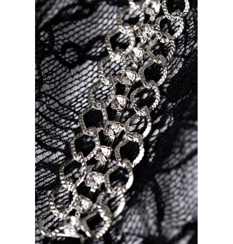 Цветочные орнаменты плавно переходят в цепочку из страз, украшенную белыми декоративными камнями. Загадочные и сексуальные впереди и классически сзади, эти трусики - украшение самой интимной части вашего тела.