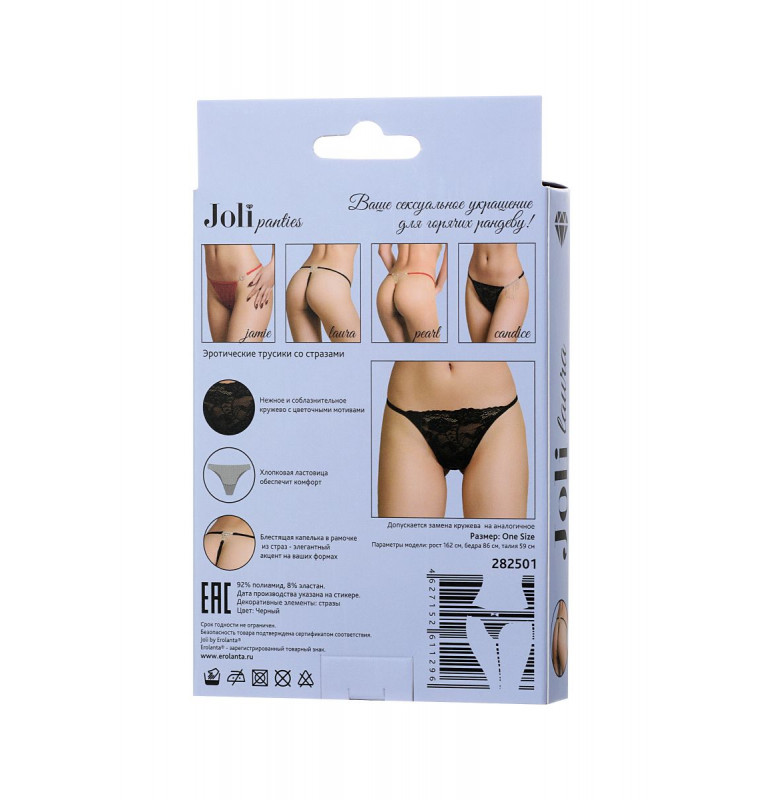 Нежные и соблазнительные кружевные цветы спереди. Мягкие лямки и хлопковая ластовица обеспечивают комфорт. Сзади капелька роскошного камня в рамочке из страз - королевская деталь сексуального образа.