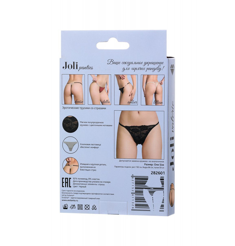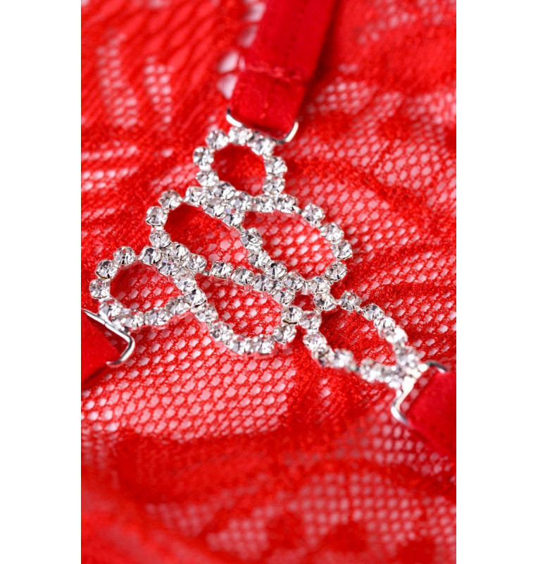 Мягкое и роскошное цветочное кружево спереди. Хлопковая ластовица и мягкие лямки обеспечивают комфорт.У основания ягодиц изящная и крупная деталь, выполненная из блестящих страз.