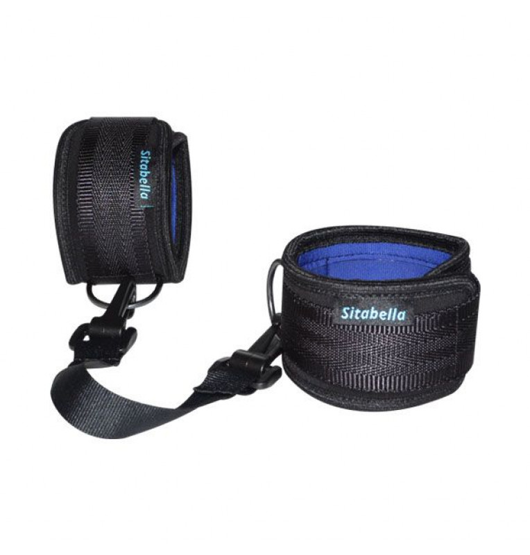 Оковы Sitabella изготовлены из неопрена - это современный материал, который имеет пористую структуру, что придаёт ему мягкие и пластичные качества. Неопрен с двух сторон покрыт нейлоном, что гарантирует прочность и долговечность изделию. Манжеты плотно обхватывают лодыжку, но при этом не нарушают кровообращения и не повреждают кожное покрытие. Это очень деликатный и безопасный аксессуар BDSM. Регулировку размера, легко произвести при помощи липучки, она надёжно зафиксирует оковы на лодыжке. Соединение оков производиться при помощи стропы-перемычки с карабинами, которые пристёгиваются к металлическим полукольцам, расположенным на манжетах. Длина перемычки с карабинами составляет около 40 см.