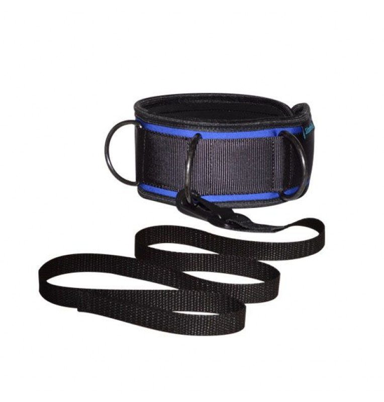Эластичный пористый неопрен, из которого изготовлен ошейник, способен вызвать лишь приятные ощущения, не оставив никаких следов. Полукольца, надёжно прикреплённые к ошейнику, предназначены для пристёгивания поводка и наручников при помощи карабинов. Поводок имеет высокопрочный пластиковый карабин и петлю на другом конце. Ошейник с внутренней стороны имеет чёрный цвет, а с лицевой насыщенно-синий. Ошейник легко закрепить на шее при помощи липучки. Размер универсальный. Длина поводка - 100 см.