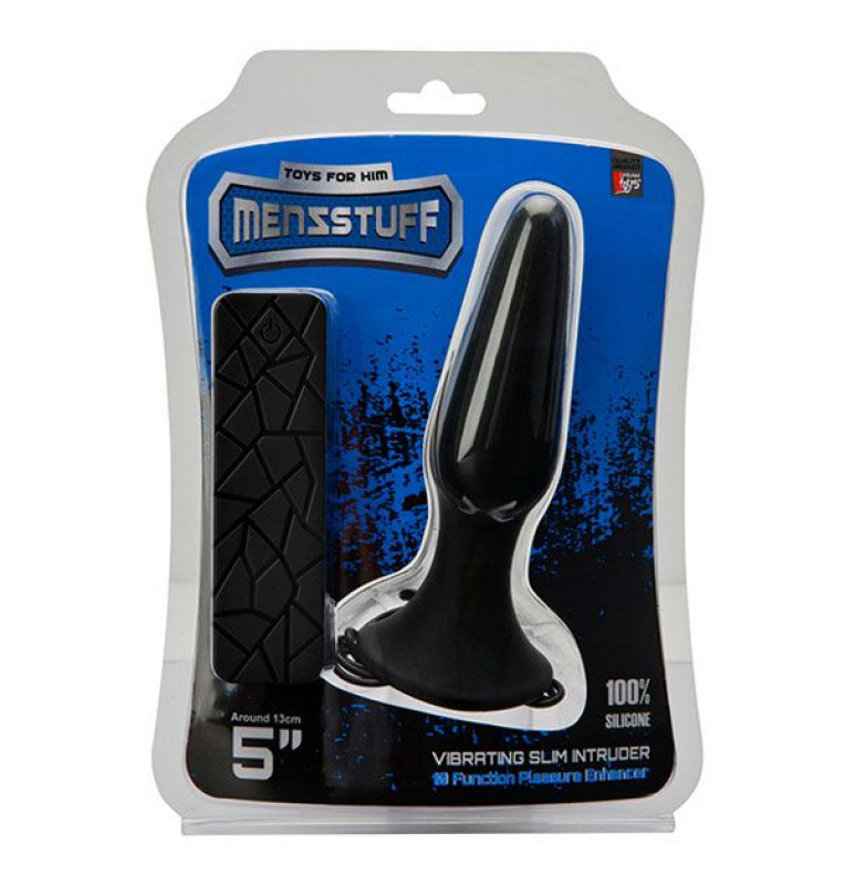 Чёрная вибропробка MENZSTUFF 5INCH SLIM INTRUDER BUTT PLUG - 13 см.