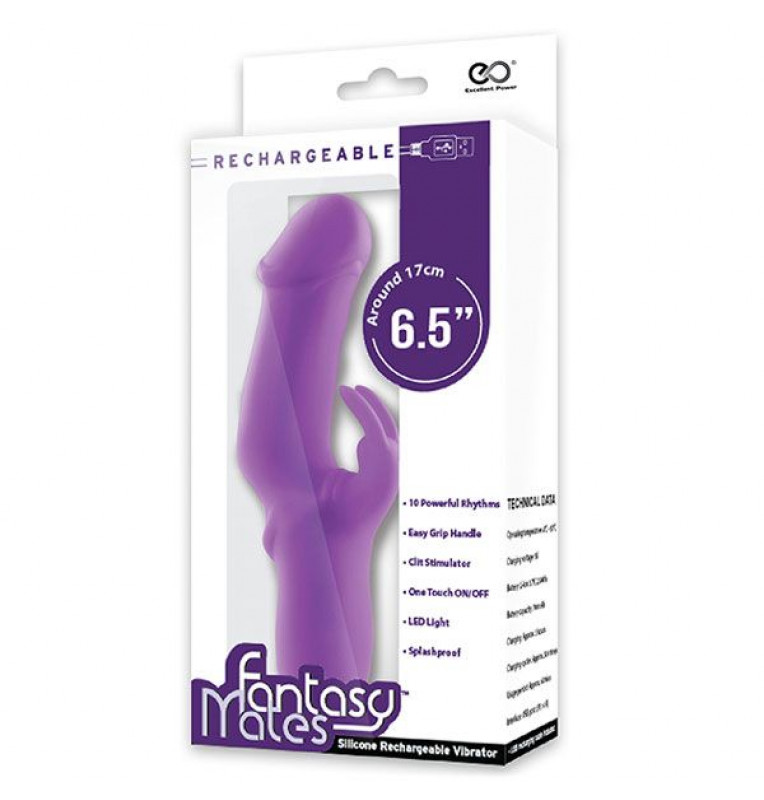 Фиолетовый вибратор с клиторальным отростком MATES FANTASY RECHARGE VIBRATOR - 17 см.