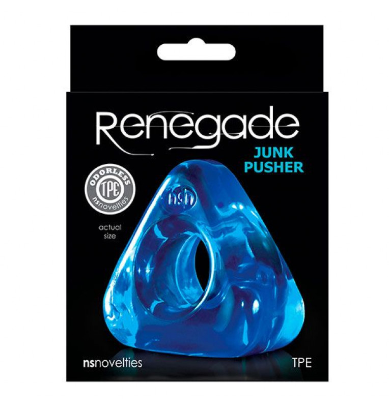 Синее треугольное эрекционное кольцо RENEGADE JUNK PUSHER. Эластичное, выполнено из ТПЕ. Внутренний диаметр - 2,5 см.