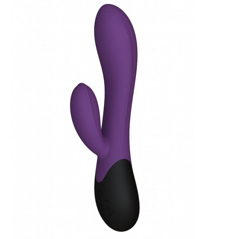 Фиолетовый вибратор с клиторальным отростком и нагревом Perseus - 20,8 см.