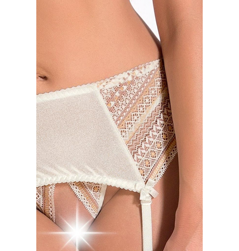 Разве Clarisse set можно назвать классическим? Конечно, если мы говорим о элегантности. А может ли он быть одновременно вызывающим и сексуальным? Конечно! Бюстгальтер типа open bra, то есть с открытой грудью, уплотнён косточками, подчёркивает женское декольте. В свою очередь пояс и трусики подчёркивают женскую талию и выделяют самые соблазнительные элементы женского тела. Невозможно остаться равнодушным рядом с женщиной в таком комплекте! В комплекте: бюстгальтер, пояс, трусики-стринги.