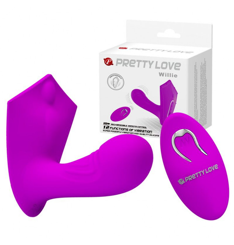 Лиловый вибромассажёр Willie с пультом ДУ. Ствол воздействие на стеночки лоно, а внешняя часть массажирует клитор. 12 режимов вибрации. Управляются при помощи пульта ДУ. Длина отростка - 7 см., диаметр - 3 см.
