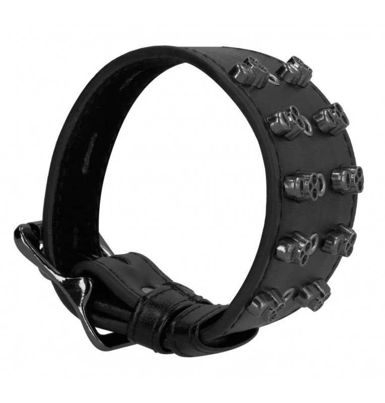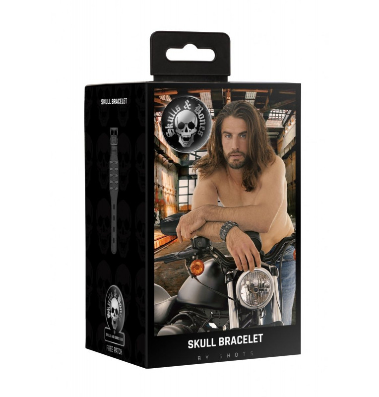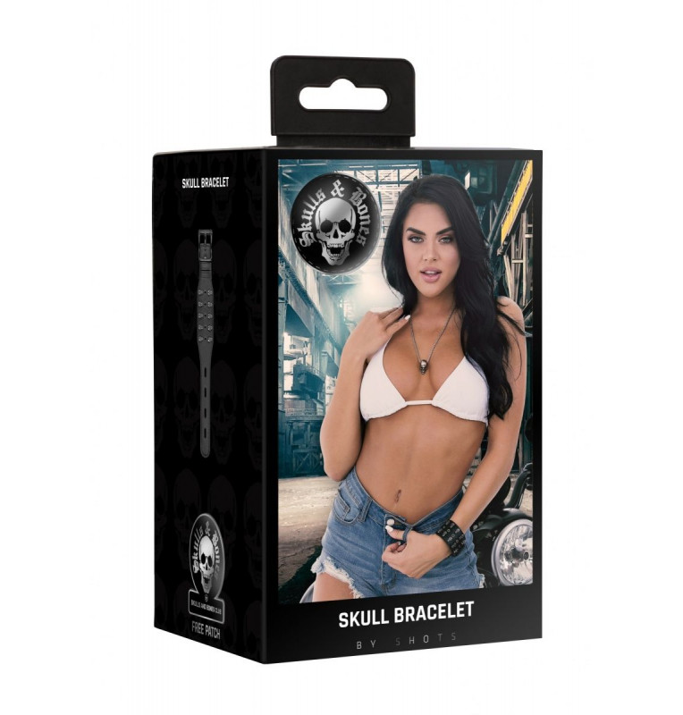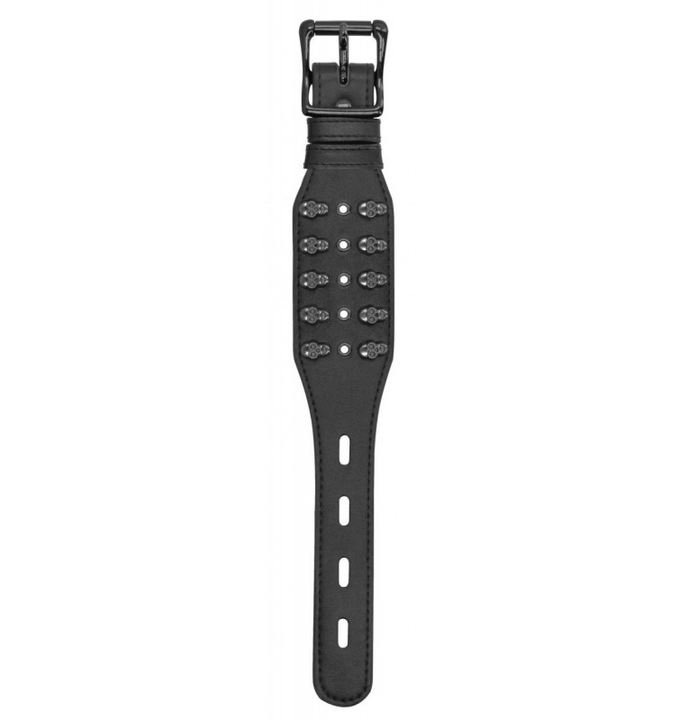 Браслет изготовлен из экокожи с металлической фурнитурой. Имеется 4 положения для регулировки закрепления браслета на руке. Длина манжеты - 27 см., ширина - 4 см.