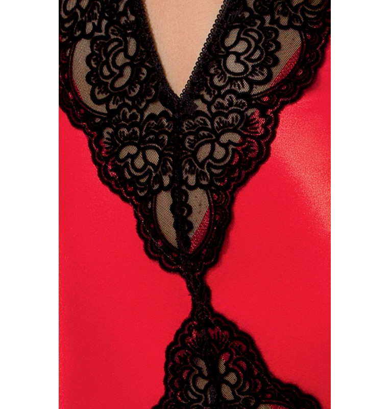 Женское эротическое боди Polina красного цвета, декорировано ажурным кружевом черного цвета.