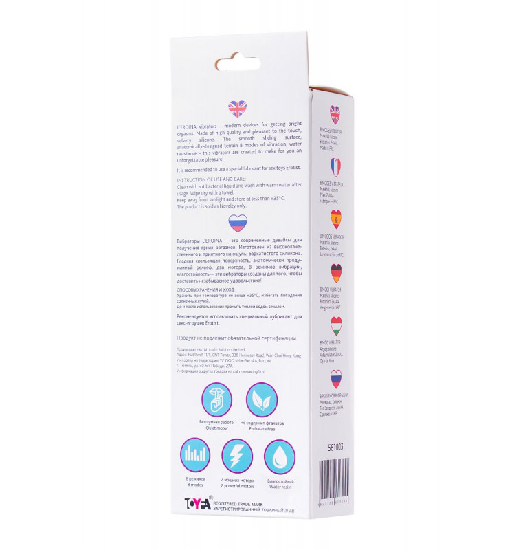 Вибраторы L EROINA — это современные девайсы для получения ярких оргазмов. Изготовлен из высококачественного и приятного на ощупь, бархатистого силикона. Гладкая скользящая поверхность, анатомически продуманный рельеф, два мотора, 8 режимов вибрации, влагостойкость — эти вибраторы созданы для того, чтобы доставить незабываемое удовольствие! Рабочая длина - 11,4 см. Минимальный диаметр - 2,3 см.
