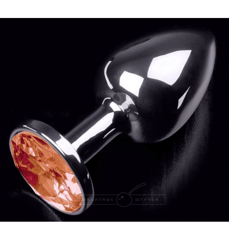 Серебристая анальная пробка с оранжевым кристаллом - 7 см.