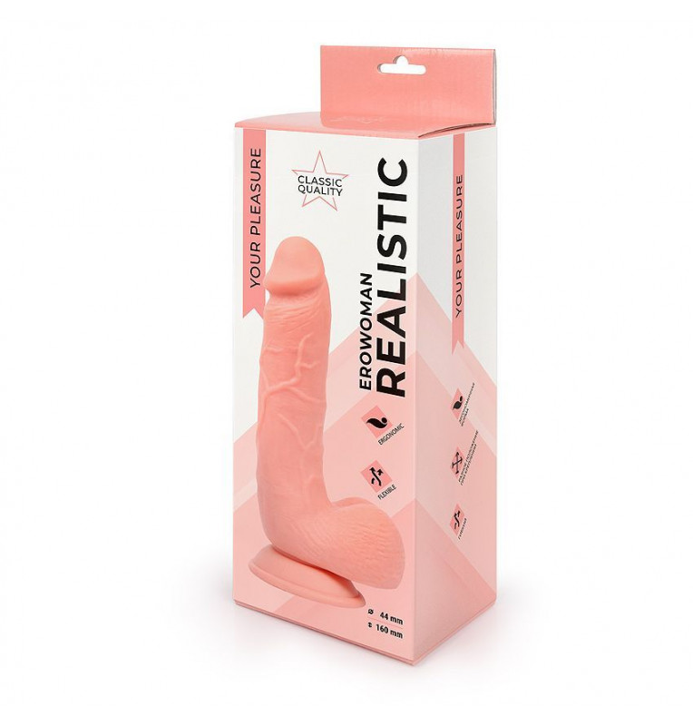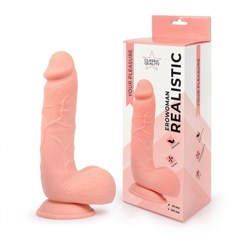 Великолепный фаллоимитатор-реалистик Erowoman займёт достойное место в любой коллекции секс-игрушек! Основные плюсы изделия - это прекрасное качество исполнения точная имитация всех деталей - чётко выраженная головка и мошонка, хорошо прорисованные венки и складочки естественный оттенок поверхности прочная присоска, позволяющая закрепить интимный аксессуар на ровной поверхности в горизонтальном или вертикальном положении. Фаллоимитатор изготовлен из мягкого материала, дарящего приятные тактильные ощущения. Прост в использовании и уходе. Рабочая длина - 16 см.