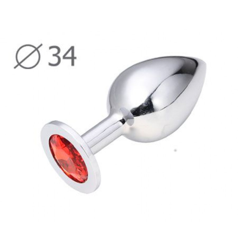Коническая серебристая анальная втулка с красным кристаллом - 8,2 см.