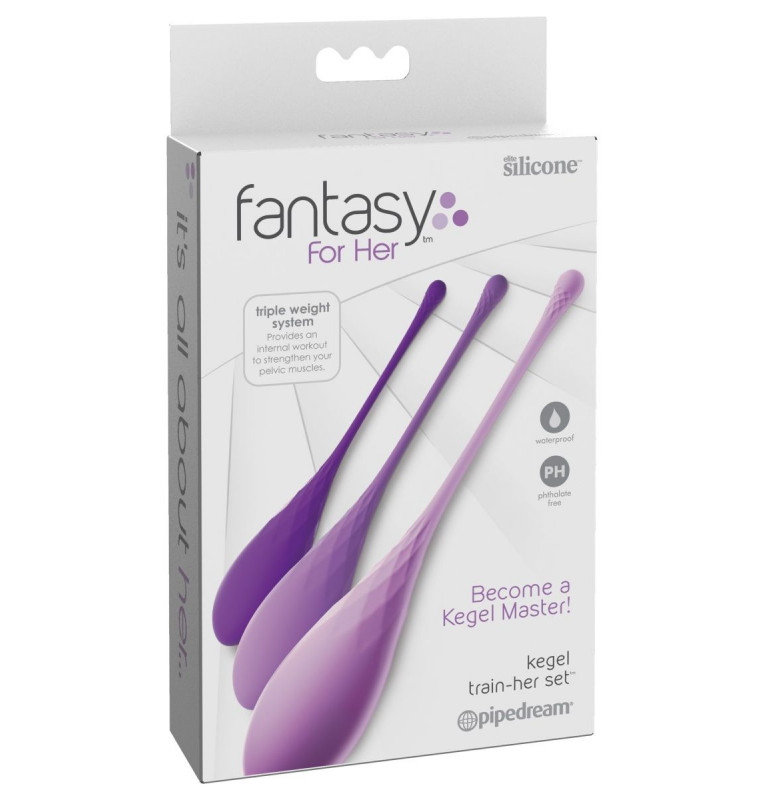 Трио Fantasy For-Her Kegel Train-Her, сочетающее в себе бархатистый силикон с вариацией весов, предлагает идеальную отправную точку для тренировок по Кегелю. При весе 50 гр в самом легком, 80 гр в среднем и 110 гр в самом тяжелом состоянии, каждая слезинка Train-Her естественным образом соответствует индивидуальным изгибам тела. Используемая для тонуса мышц тазового дна, практика Кегеля совместно с тренажерами Kegel Train-Her может сыграть большую роль в превращении секса в еще более приятный опыт для обоих партнеров. Тренированные мышцы тазового дна обеспечивают больший контроль над ощущениями и удовольствиями - некоторые женщины замечают более сильные и более интенсивные оргазмы, и большинство сообщают об общем подтягивающем эффекте, который, разумеется, оценят любители обоих полов. Сильные мышцы тазового дна также могут помочь подтянуть и тонизировать влагалищный канал после родов, восстанавливая эластичность и контроль мочевого пузыря. Податливые, сверхгладкие и идеально гибкие, тренажеры Train-Her вставляются комфортно (небольшое количество смазки на водной основе может помочь при размещении). Наряду со стимуляцией мышц тазового дна улучшают эластичность тканей, кровоснабжение, повышают чувствительность. Вес шариков - 110, 80 и 50 грамм.