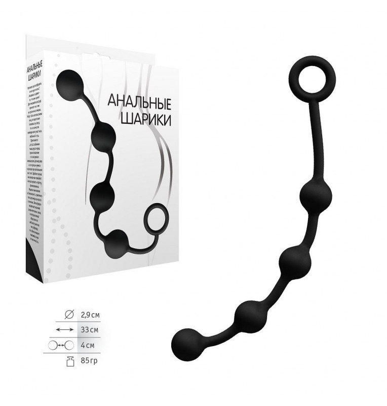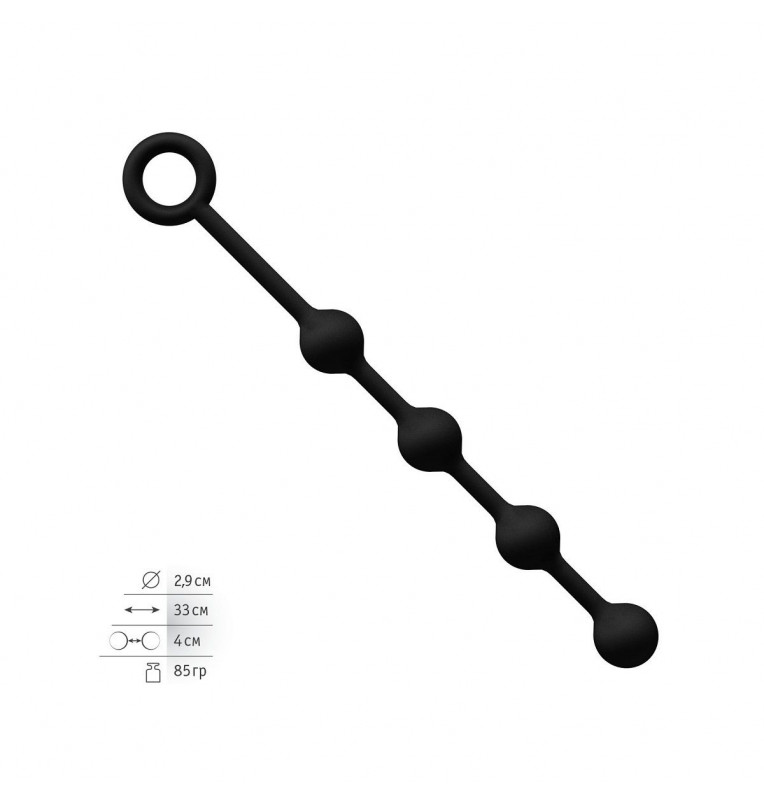 Чёрная анальная цепочка с 4 шариками - 33 см.