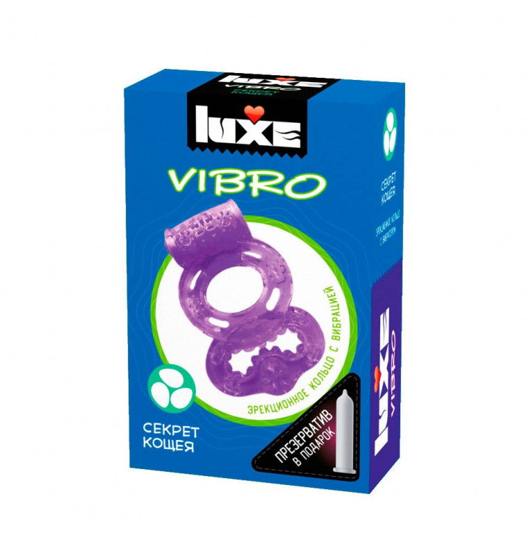 Фиолетовое эрекционное виброкольцо Luxe VIBRO Секрет Кощея + презерватив