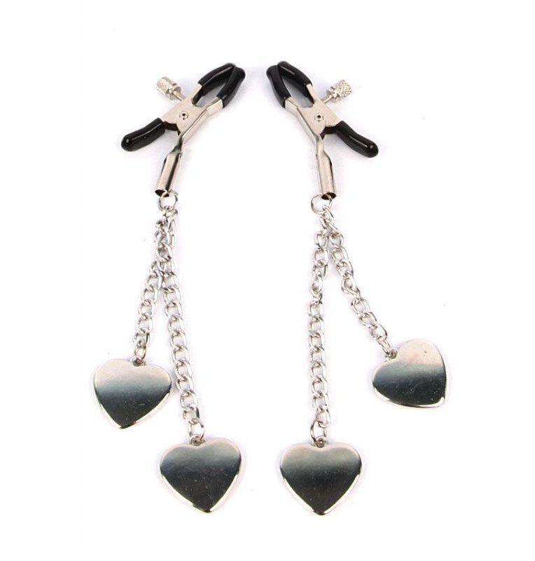 Серебристо-черные зажимы на соски с декором в виде сердечек