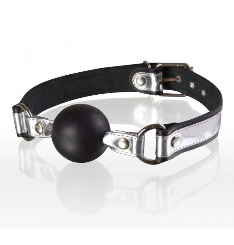 Кляп-шарик на чёрно-серебристых ремешках