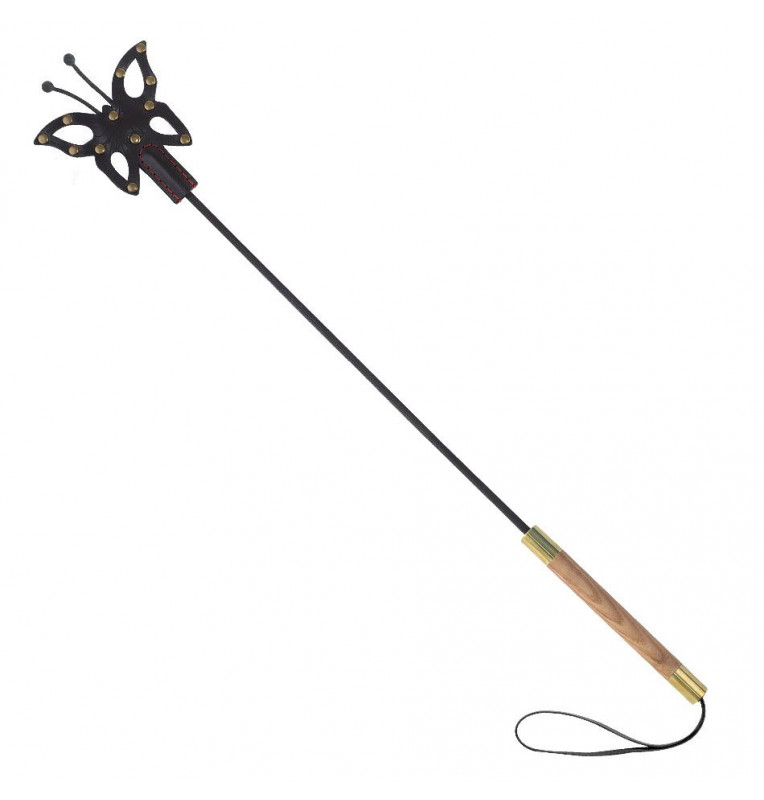 Стек с фигурным окончанием в виде бабочки из черной кожи - 78 см.