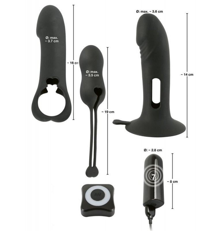 Сольный секс во многих вариантах! Вибропуля с 7 режимами вибрации и пультом дистанционного управления с кнопкой One Touch. Можно комбинировать с 3 различными насадками. Перезаряжается с помощью USB-кабеля с магнитным зарядным устройством. Длина вибропули - 7,8 см., диаметр - 2,8 см. Длина насадки на пенис с основанием - 14,1 см., рабочая длина - 12,5 см., диаметр - 3,6 см. Длина насадки с петлей - 16 см., рабочая длина - 10,5 см., диаметр - 3,7 см.