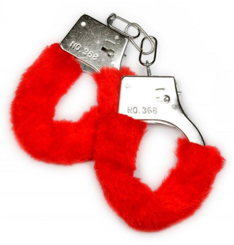 Металлические наручники с красной опушкой и ключиком