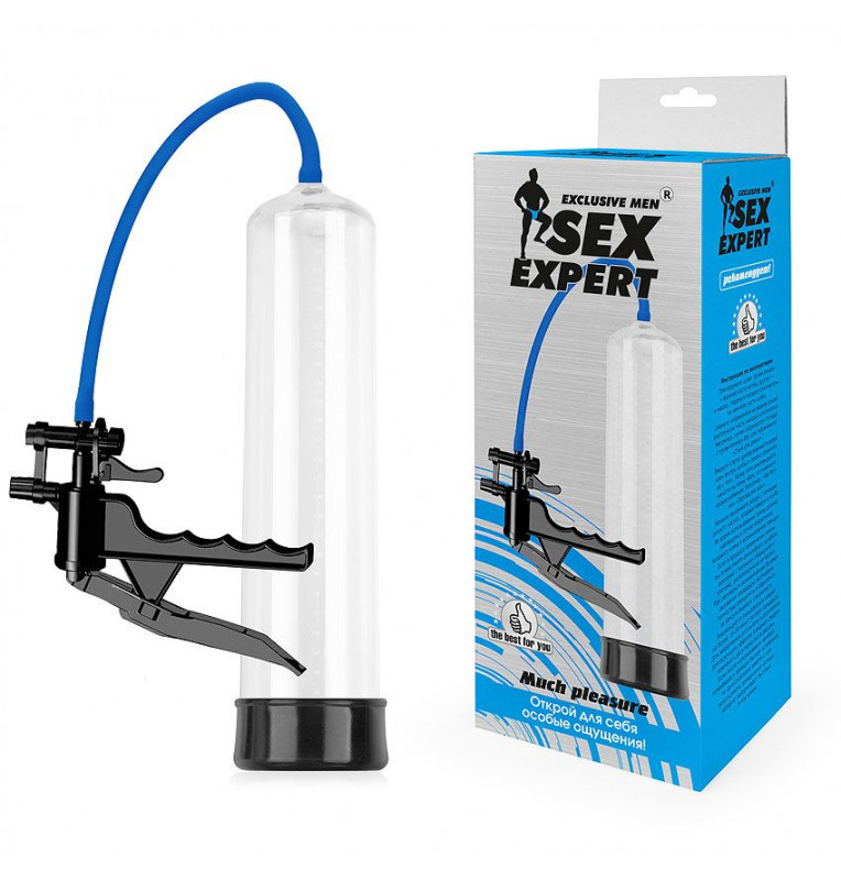 Прозрачная вакуумная помпа Sex Expert с ручным насосом