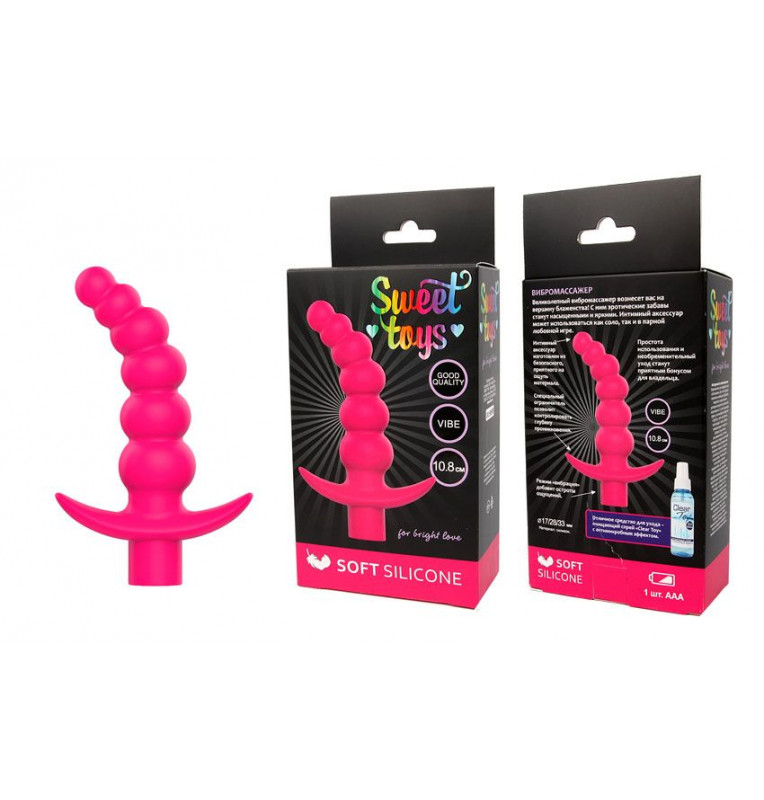 Розовая вибрирующая анальная елочка Sweet Toys - 10,8 см.