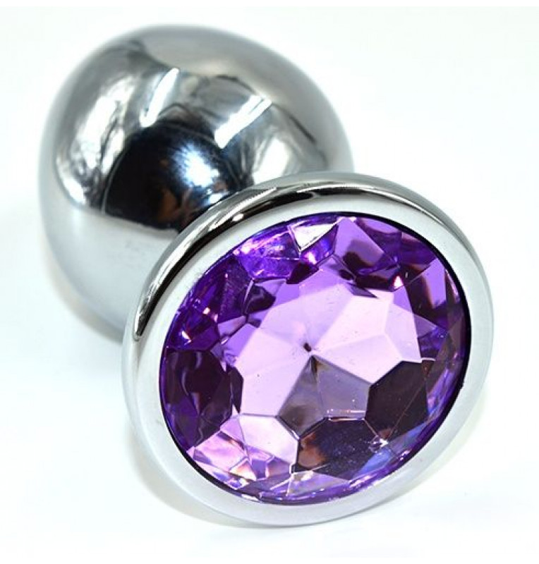 Серебристая анальная пробка из нержавеющей стали с фиолетовым кристаллом - 10 см.