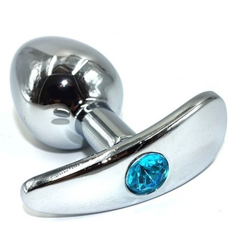 Серебристая анальная пробка для ношения из нержавеющей стали с голубым кристаллом - 8 см.
