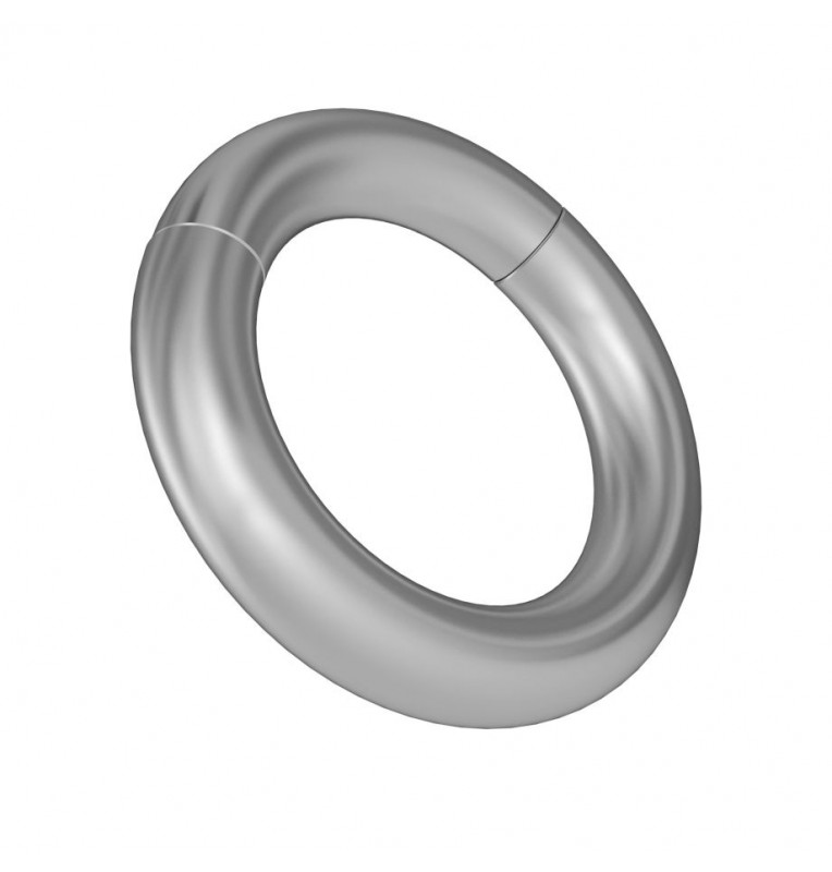 Гладкое стальное кольцо из двух половин соединяются при помощи магнитов. Закрепите кольцо на мошонке у основания фаллоса, приятная тянущая боль будет сопровождать каждое ваше движение, будь то прелюдия или непосредственно интимная близость. Во время секса такое кольцо играет роль не только дополнительного стимулятора, дарящего новые ощущения - но и смело можете рассчитывать на пролонгирующий эффект. Так как кольцо будет оттягивать яички, а это неизменно приводит к задержке семяизвержения и продолжительному половому акту ведущему к бурному и томному оргазму. Вес - 95 грамм.