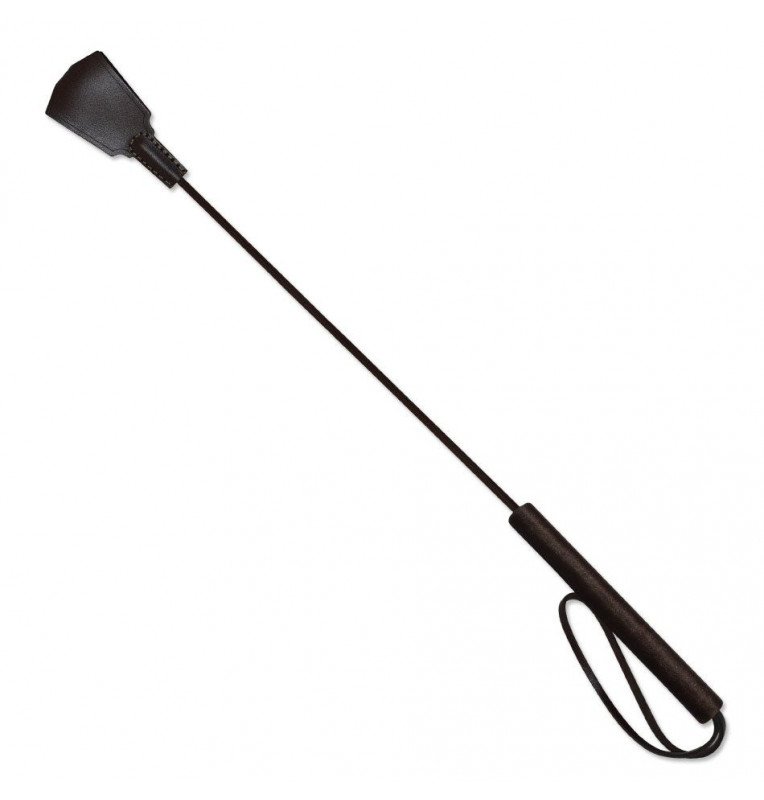 Стек Готика представлен в виде роскошного, изящного изделия цвета темного шоколада. Петлеобразная хлопушка стека изготовлена из натуральной кожи высокого качества, располагается на конце гибкого, но прочного хлыста. Комфортное использование девайса обеспечивает бархатистая рукоять, покрытая велюровой тканью. Ремешок-петля, находящийся на рукояти, позволяет дополнительно фиксировать стек на запястье. Длина рукояти - 17 см. Длина хлопушки - около 13 см.
