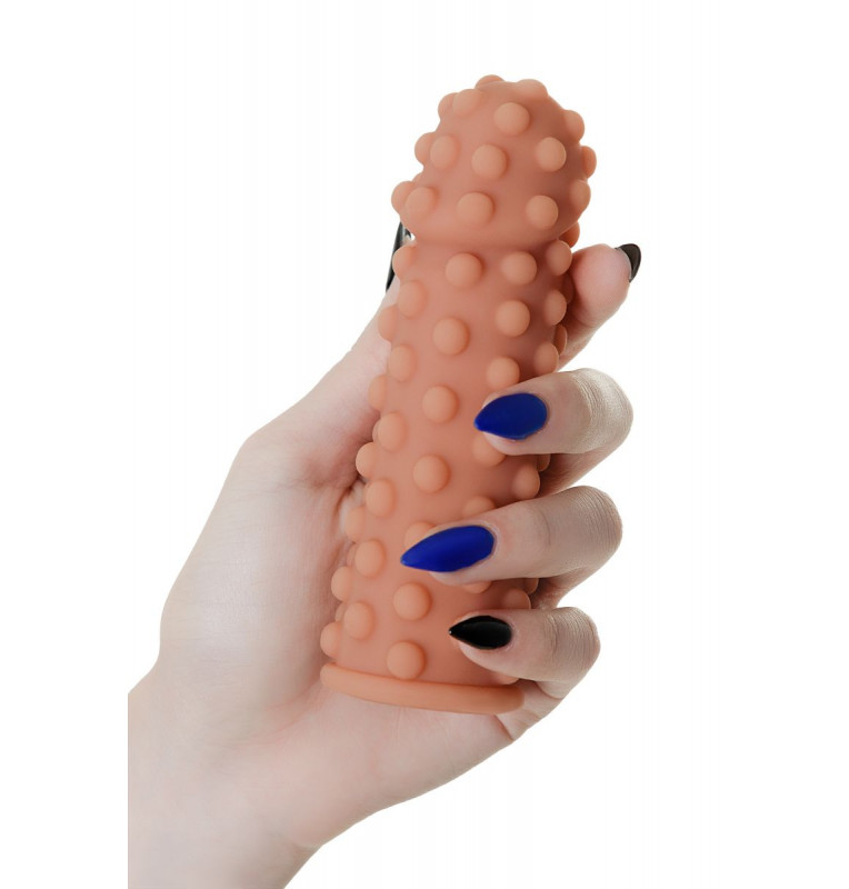 Увеличивающая насадка с впечатляющей дополнительной стимуляцией решает сразу 3 задачи: дарит удовольствие обоим партнерам, позволяет экспериментировать с секс-игрушками и выводит интимную жизнь на более высокий уровень. Желанное разнообразие. Насадка придает члену внушительный объем и новую форму, поэтому как нельзя лучше подходит для сценариев - секс с незнакомцем. При этом выразительный рельеф с выпуклыми пузырьками привносит незабываемый эффект новизны в ощущения партнерши. Зашкаливающее удовольствие для двоих. В то время как женщина испытывает потрясающее чувство наполненности и получает интенсивную стимуляцию стенок влагалища, мужчина наслаждается более продолжительным половым актом и возбуждающими оргазмами партнерши. Яркие эксперименты. Киберкожа прекрасно передает всю мощность вибраций, поэтому насадку можно использовать не только с партнером, но и с любимым вибратором. Вы также оцените как она превосходно тянется и легко надевается на член, обеспечивая при этом плотное и комфортное прилегание. Как быстро принимает температуру тела и насколько она приятна на ощупь.