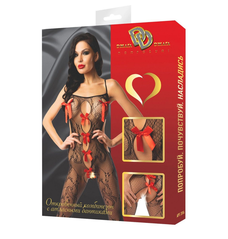 Кэтсьюит с доступом выполнен из невероятно мягкой мелкой сеточки, покрытый ажурным орнаментом по всей длине. Модель облегает тело и подчеркивает его сексуальность, он демонстрирует многое, но скрывает самое главное. Такой наряд будоражит фантазию, эффектно подчеркивает привлекательность и при этом не мешает партнерам наслаждаться любовными утехами. Интимные вырезы в зоне груди, живота и попы украшены бантами из атласной ленты, (бантики не развязываются), что придает образу романтичности и превращает этот костюм в идеальный образ для сексуальной игры с вашим партнером.