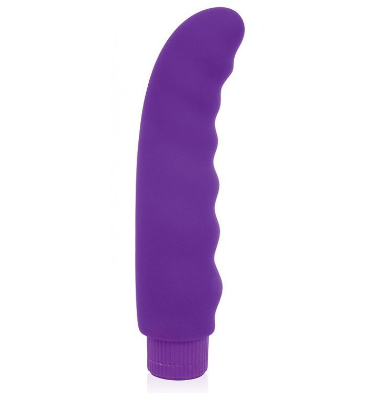 Фиолетовый изогнутый ребристый вибромассажер - 15 см.