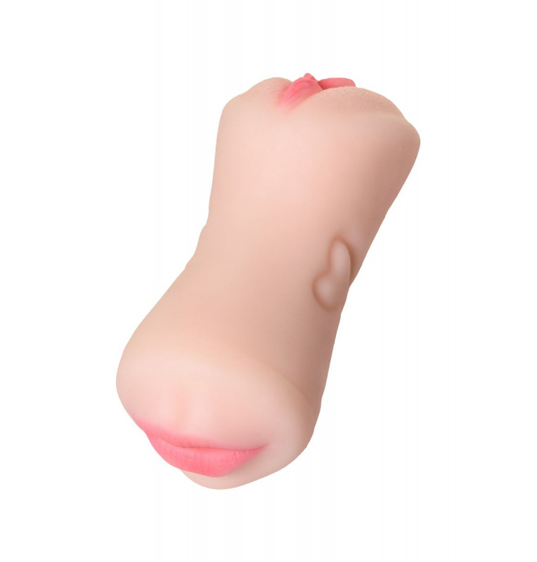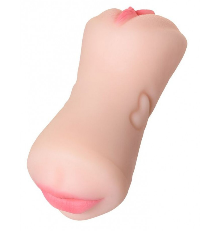 Телесный двусторонний мастурбатор Pretty Mouth - ротик и вагина
