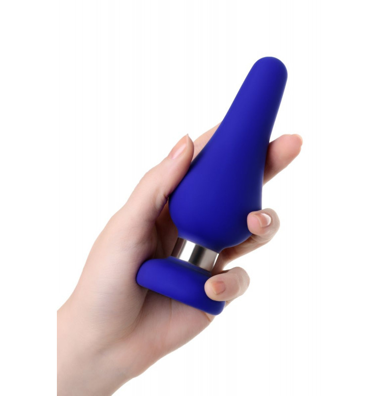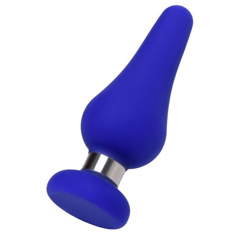 Синяя силиконовая анальная втулка с ограничителем - 13 см.